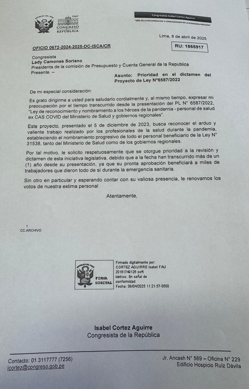 Reitero solicitud para que se dictamine con prioridad el Proyecto de Ley N°8846/2024 CR.